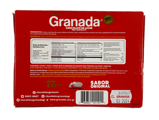 Sold outGRANADA Milk Chocolate Bar (12 Bars)