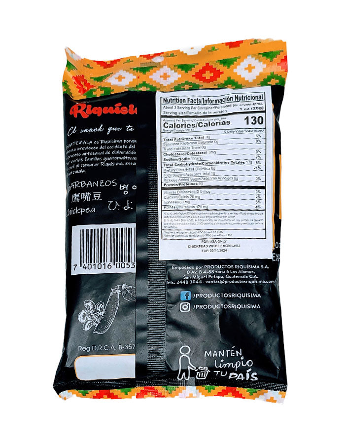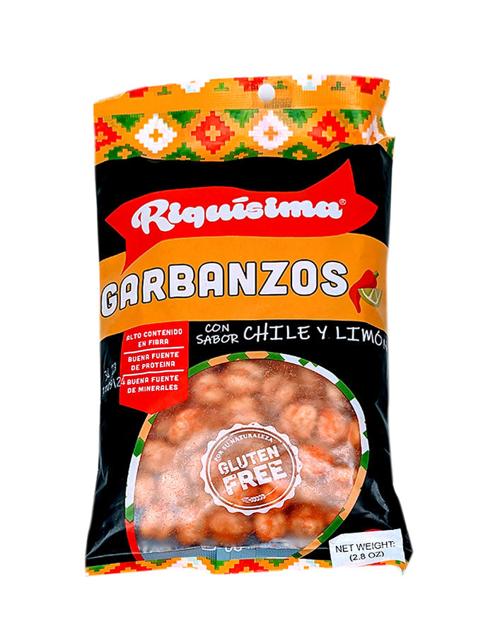 RIQUISIMA - Chile Limón Garbanzos Beans Snack - 2.8oz Bag - Pack of 2